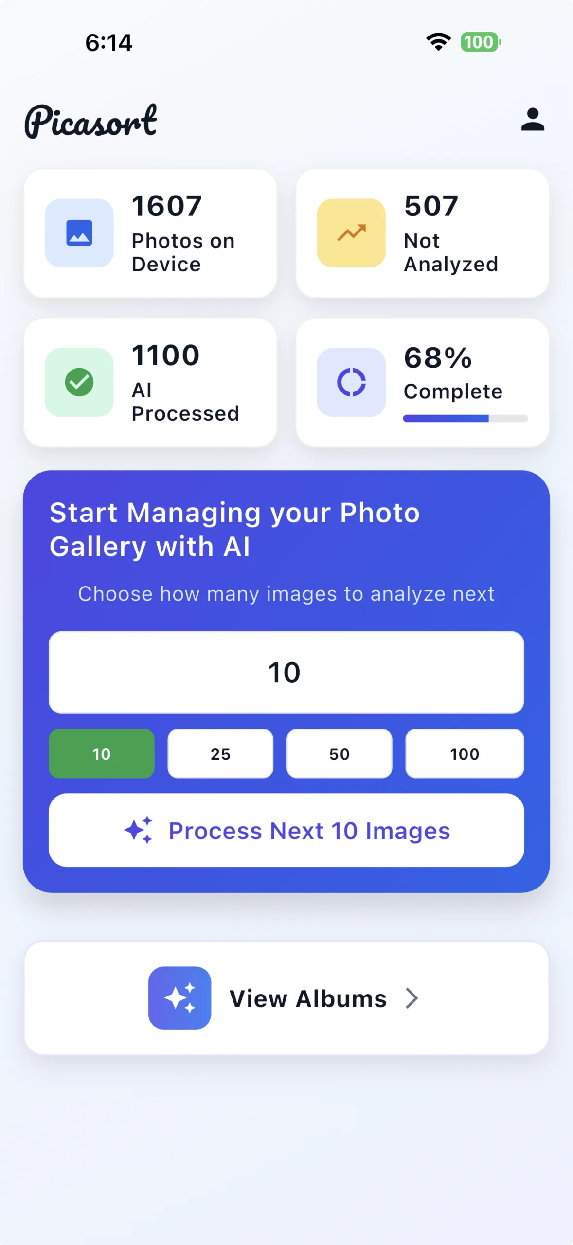 • Photos are processed in batches like 10, 25, 50, or 100, for smooth AI performance