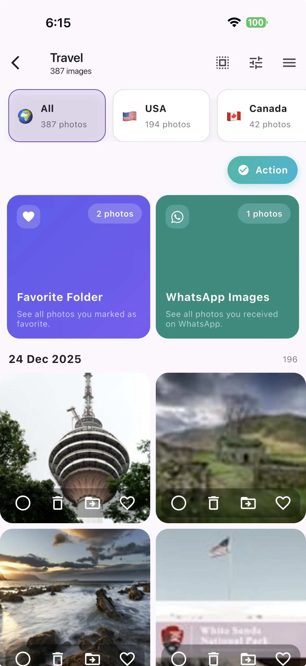 Select multiple photos and manage them instantly.